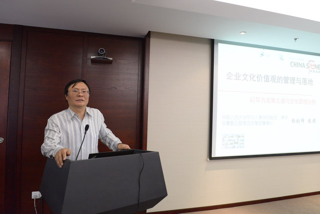彭劍鋒教授觀點(diǎn)鮮明地提出,創(chuàng)新驅(qū)動(dòng)已成為中國產(chǎn)業(yè)轉(zhuǎn)型升級(jí)的內(nèi)在驅(qū)動(dòng)力,而企業(yè)文化建設(shè)對(duì)激活人的價(jià)值創(chuàng)造活力,提升人的價(jià)值創(chuàng)造能力,完成企業(yè)的轉(zhuǎn)型具有特殊的意義。彭教授以華為公司發(fā)展之道與文化管理為例,分享了這家企業(yè)以“華為基本法”的起草形成、變革發(fā)展歷程為主線的企業(yè)文化建設(shè)之路,以及企業(yè)文化建設(shè)對(duì)華為公司從1992年銷售收入僅1個(gè)億到現(xiàn)在超過2000個(gè)億的高質(zhì)量發(fā)展的積極助益。彭教授指出,企業(yè)文化理念是自我批判、自我超越的結(jié)果,需要回答好三個(gè)問題:過去為什么成功?過去成功的關(guān)鍵要素哪些能夠持續(xù)幫助企業(yè)成功?未來成功靠什么?在此基礎(chǔ)上形成的共識(shí)比什么都重要,將這樣的文化理念融入企業(yè)的機(jī)制建設(shè)與制度建設(shè),將對(duì)企業(yè)發(fā)展發(fā)揮巨大的作用。