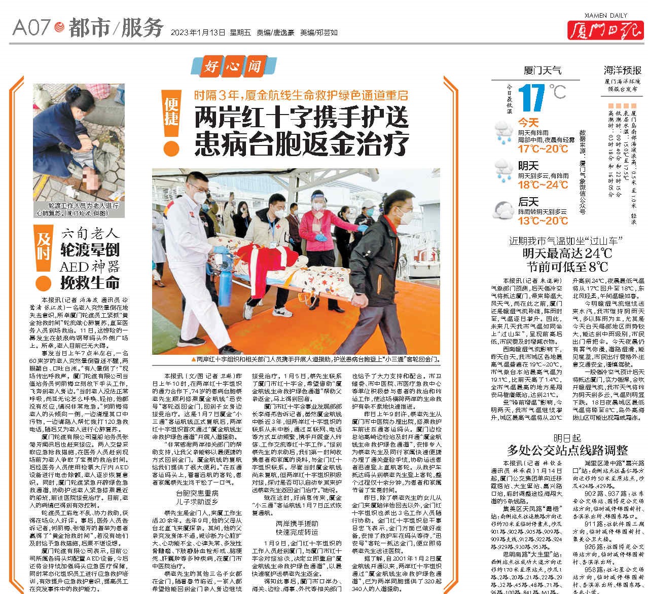 上述老人是廈門輪渡公司員工在短短8天里挽救的第二條生命。在春節(jié)將至的特殊日子里,他們用飽含大愛之心的“生死競速”,守護著每一個中國家庭共有的平安團圓夢。