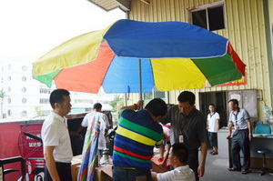 速傳物流工會(huì)為速傳總部、太平物流、勝獅貨柜的倉(cāng)庫(kù)、外勤等一線(xiàn)崗位的員工們送上遮陽(yáng)傘、水杯、風(fēng)扇、電飯鍋、綠豆、白糖、鹽汽水、毛巾、肥皂、花露水、清涼油、風(fēng)油精、龍虎人丹及藿香正氣水、防暑飲料等多樣化的慰問(wèn)品。象嶼港灣公司工會(huì)除了購(gòu)置飲品外,還結(jié)合員工戶(hù)外作業(yè)的實(shí)際需求,為一線(xiàn)員工們送去實(shí)用的雨衣套裝。天津立業(yè)向一線(xiàn)員工們發(fā)放了鹽汽水。上海閩興大發(fā)放了有機(jī)綠豆、大米和鹽汽水,以及為物流外勤人員發(fā)放了草帽及小型風(fēng)扇等慰問(wèn)品。