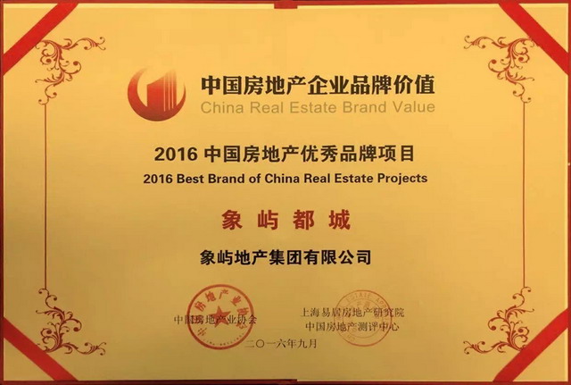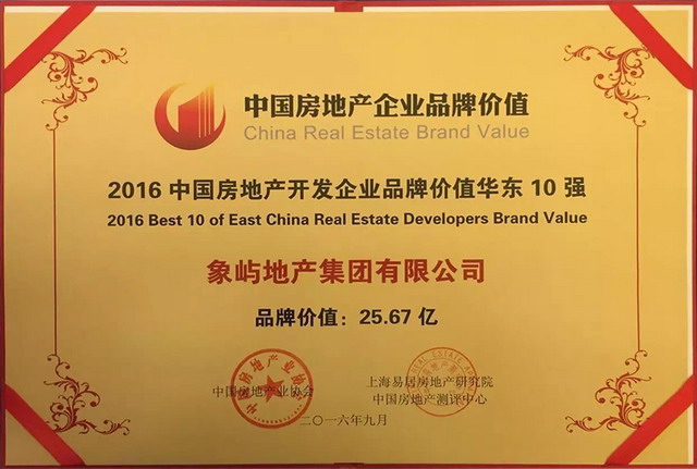 9月21日, “2016中國房地產(chǎn)企業(yè)品牌價(jià)值測評(píng)成果發(fā)布會(huì)暨房地產(chǎn)品牌發(fā)展高峰論壇”在廈門隆重舉行。會(huì)上發(fā)布了《2016中國房地產(chǎn)企業(yè)品牌價(jià)值測評(píng)研究報(bào)告》,及2016中國房地產(chǎn)開發(fā)企業(yè)品牌價(jià)值50強(qiáng)、華東區(qū)域10強(qiáng)在內(nèi)的多個(gè)相關(guān)榜單。象嶼地產(chǎn)以25.67億元品牌價(jià)值榮膺2016中國房地產(chǎn)開發(fā)企業(yè)品牌價(jià)值華東10強(qiáng),這已是公司連續(xù)第三年入圍華東區(qū)域品牌價(jià)值TOP10。此外,象嶼都城項(xiàng)目獲評(píng) “2016中國房地產(chǎn)優(yōu)秀品牌項(xiàng)目”。