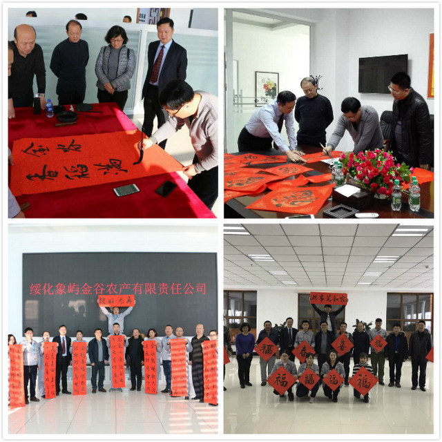 走訪中,時(shí)近春節(jié),為傳承中華優(yōu)秀傳統(tǒng)文化,營(yíng)造祥和愉悅的節(jié)日氛圍,廈門市總工會(huì)、象嶼集團(tuán)工會(huì)領(lǐng)導(dǎo)還與象嶼農(nóng)產(chǎn)員工同樂,“寫春聯(lián)送祝福”。大家集思廣益,構(gòu)思春聯(lián)內(nèi)容。有象嶼農(nóng)產(chǎn)員工提出,“當(dāng)保障嚴(yán)管理齊謀共發(fā)展,勇創(chuàng)新促增效鑄百年象嶼”,橫批“家和萬事興”;邵主席接著提出一聯(lián),“創(chuàng)新轉(zhuǎn)型謀發(fā)展,開放包容續(xù)宏篇”,橫批“繼往開來”;市總工會(huì)領(lǐng)導(dǎo)也一同創(chuàng)作,“象嶼啟紅帆,金谷囤滿倉(cāng)”,橫批“合作共贏”,希望象嶼農(nóng)產(chǎn)能以合作精神,在新的一年里繼續(xù)揚(yáng)帆起航、共享五谷豐登。每條春聯(lián),都由市總工會(huì)領(lǐng)導(dǎo)親自潑墨揮毫,行書、隸書、草書……揮灑中,一幅幅散發(fā)著清新墨香的喜慶大紅春聯(lián)展現(xiàn)在大家眼前。瑯瑯上口的春聯(lián)春意濃,各級(jí)工會(huì)組織對(duì)員工們深深的節(jié)日問候和祝福送到了每個(gè)人的心坎里。
