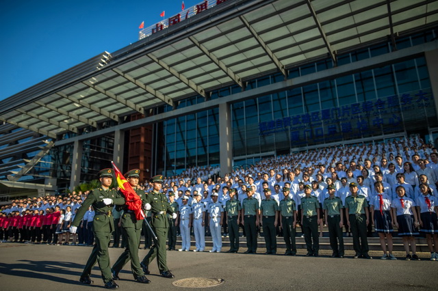 升旗手迎風(fēng)振臂一揮,五星紅旗冉冉升起