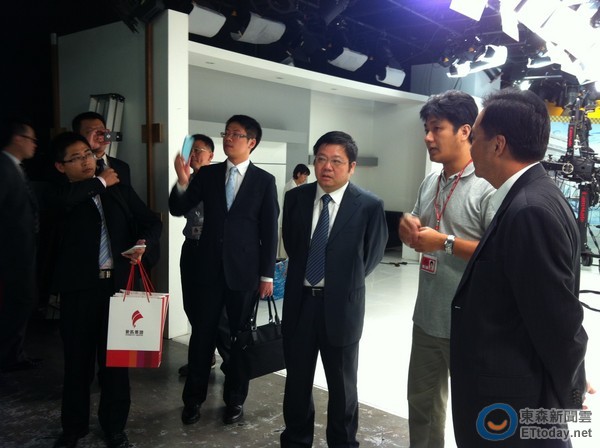 廈門商務(wù)局副局長鄭耀(前排左三)、象嶼集團(tuán)副總裁陳方(前排右三)率訪問團(tuán)拜會東森總裁王令麟(前排中),并與東森經(jīng)營團(tuán)隊進(jìn)行會談。(圖/ETtoday)