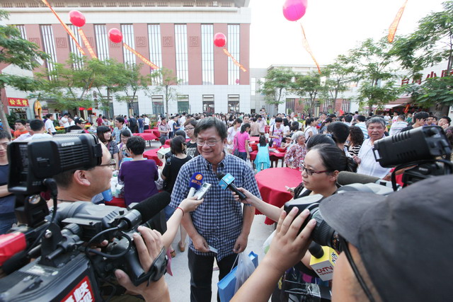入駐大嶝小鎮(zhèn)的臺商接受兩岸媒體采訪
