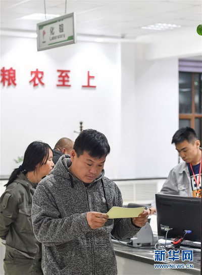 在黑龍江北安市的北安象嶼金谷農產有限責任公司,一位糧農在查看糧食化驗結果