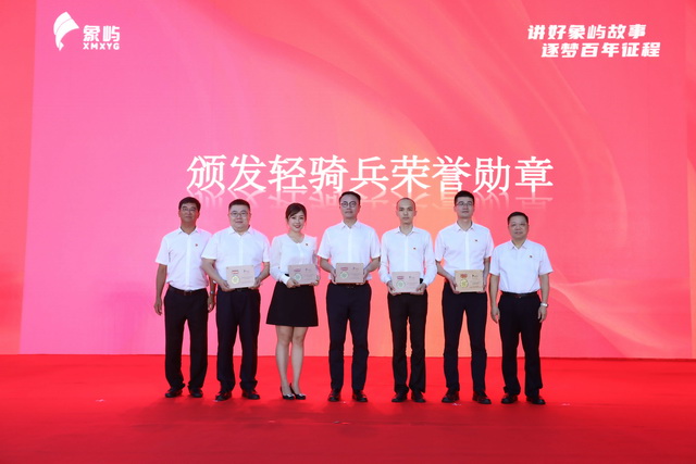 根植于廈門這片熱土,成長于改革開放的大潮中,象嶼人的血管里,流淌著紅色的血液,燃燒著改革的熱情。站上廈門站舞臺的5位宣講輕騎兵,既有此前幾站活動的宣講人,也有應(yīng)集團(tuán)黨委“走基層,聽呼聲”調(diào)研中基層訴求,加入的25周年新銳獎代表。他們所處的行業(yè)不同、職務(wù)不同,各有特點,但基本都經(jīng)歷過身份、角色的轉(zhuǎn)變。他們在特區(qū)精神和象嶼文化的感召下,勇于走出舒適區(qū),在陌生領(lǐng)域開拓進(jìn)取,闖出一片廣闊天地。張水利書記、陳方副書記分別向他們授予黨建理論宣講輕騎兵榮譽(yù)勛章。