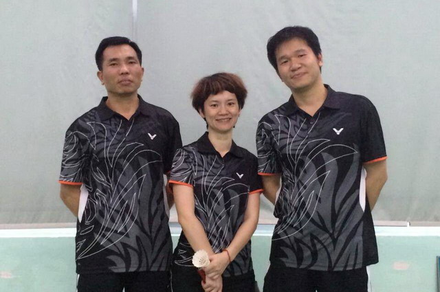 集團公司代表隊隊員合影(左起傅根海、胡秋云、陳炳忠)