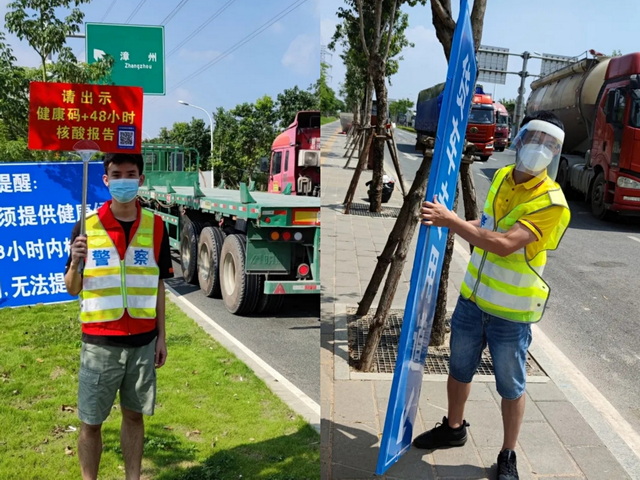 9月17日中午1點25分,共產(chǎn)黨員、象嶼建設(shè)集團(tuán)防疫志愿者服務(wù)隊隊長郭振華接到海滄區(qū)疫情防控指揮部的通知,要求在下午三點前到達(dá)位于海滄海翔大道東埔村的檢查站點,參與交通防控協(xié)管工作。