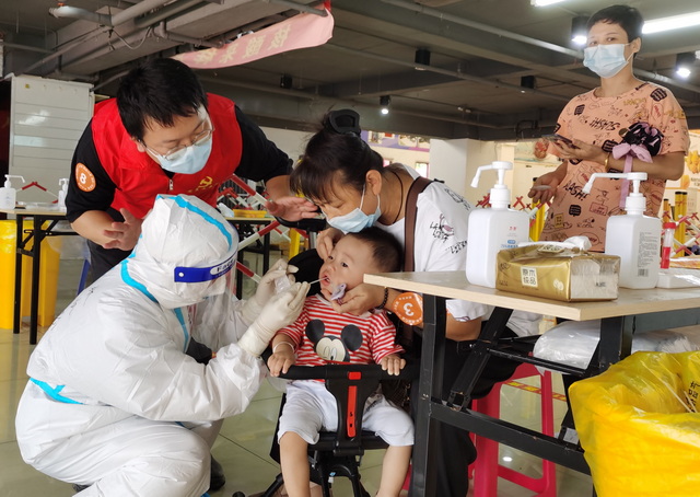 來自象嶼速傳黨辦的禇穎與她愛人齊上陣,兩人錯開時間進(jìn)行志愿服務(wù),一人在外幫助市民進(jìn)行核酸檢測,一人在家照顧孩子,既顧好“小家”也顧著“大家”。
