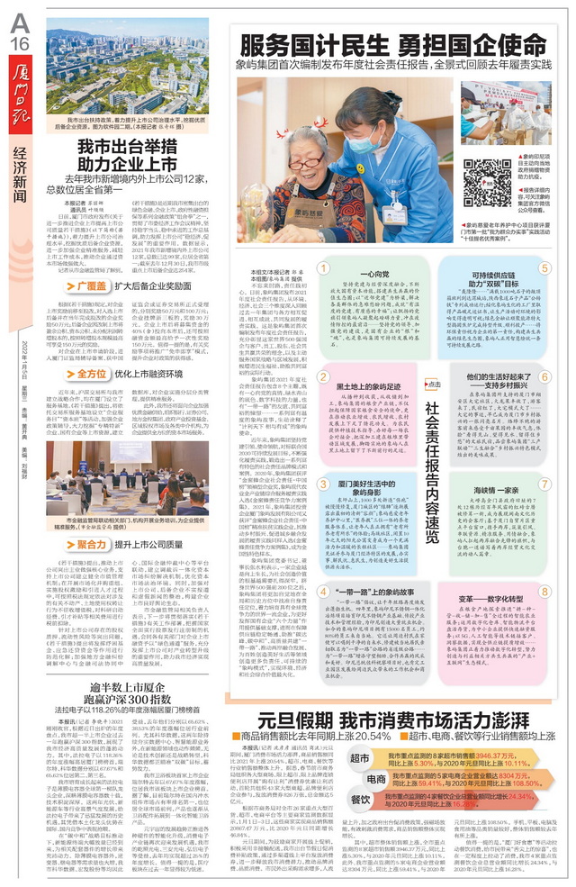 【廈門日?qǐng)?bào)】服務(wù)國計(jì)民生 勇?lián)鷩笫姑髱Z集團(tuán)首次編制發(fā)布年度社會(huì)責(zé)任報(bào)告,全景式呈現(xiàn)2021年履責(zé)實(shí)踐