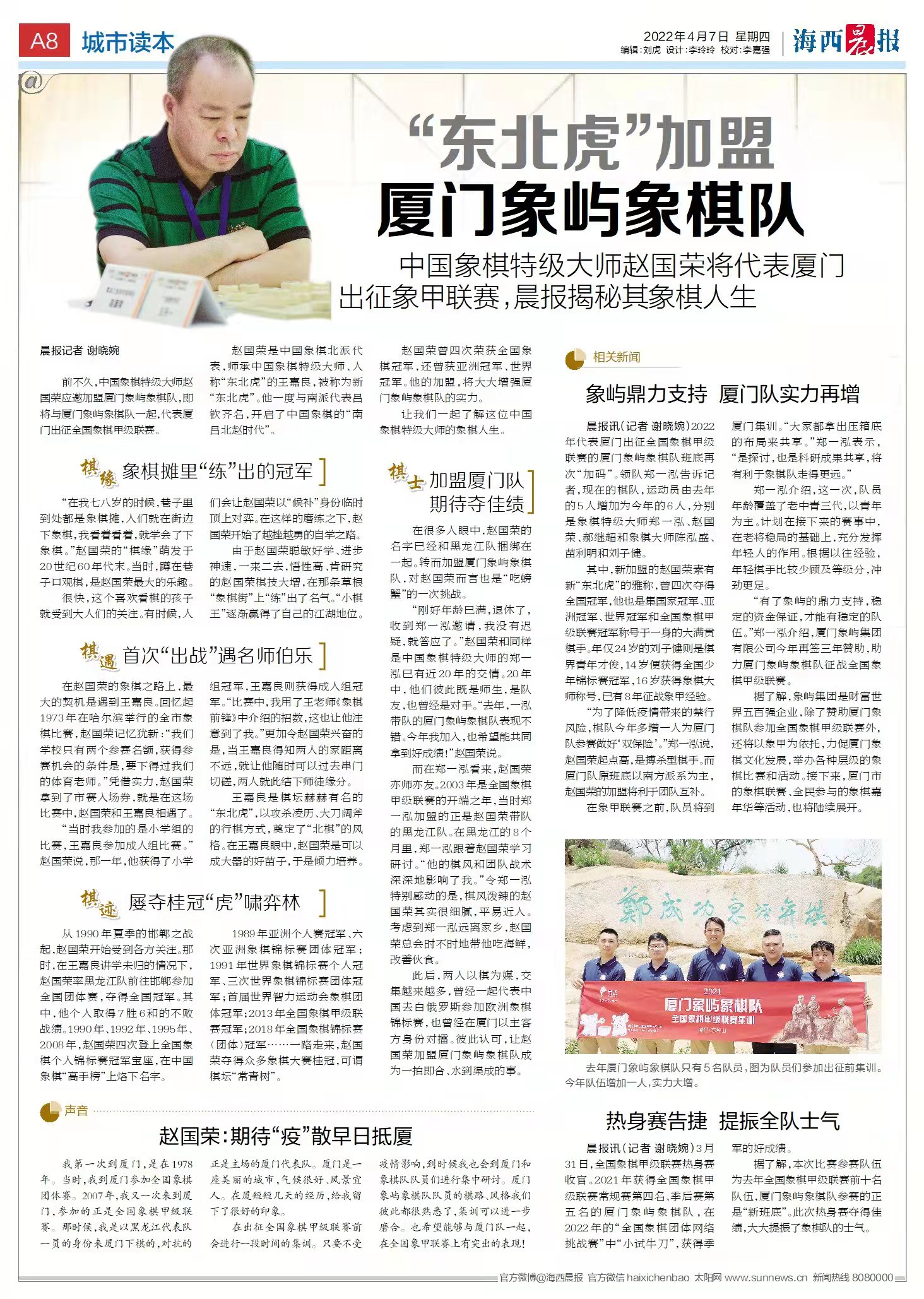 【海西晨報】“東北虎”南下 廈門象嶼象棋隊(duì)新“班底”再加碼