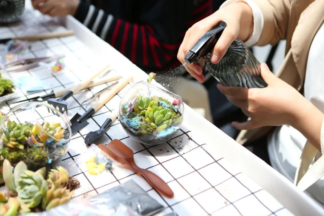二次處理的咖啡渣作土壤,搭配清新綠植,一個個萌態(tài)十足的專屬花園就此誕生。別忘了拿上小綠植信息科普卡,學習綠植栽培養(yǎng)護小知識,讓這片綠意久久相伴。
