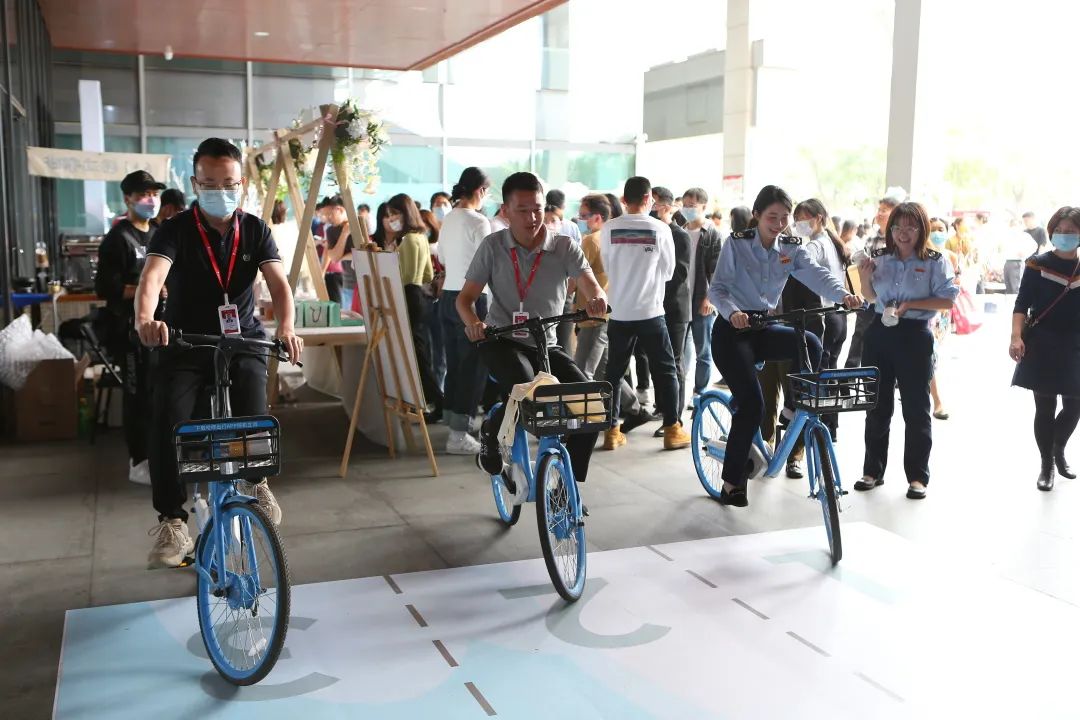 不遠處的自行車慢騎比賽,選手們屏氣凝神,各顯“騎”能,現(xiàn)場不時傳出陣陣掌聲和歡笑聲。大家在趣味慢騎中釋放工作壓力,推廣低碳出行。