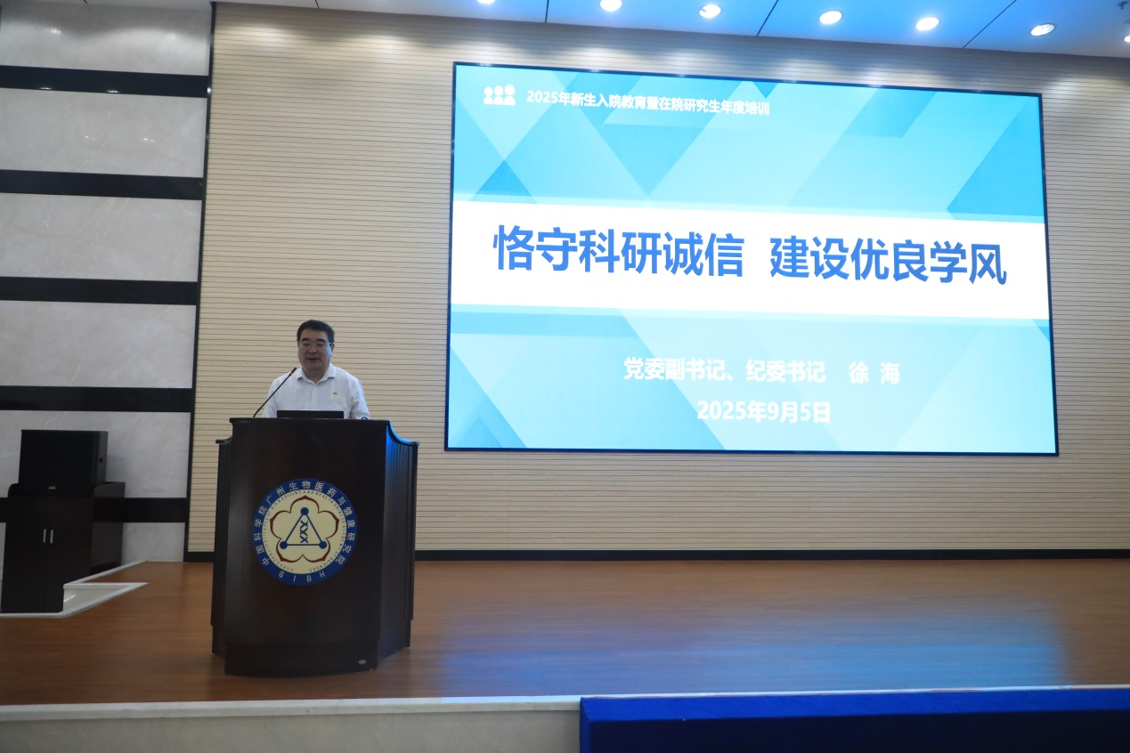 金秋九月,萬象更新。為落實(shí)立德樹人的根本任務(wù),引導(dǎo)學(xué)生堅(jiān)定理想信念、樹立遠(yuǎn)大目標(biāo),9月5日,中國科學(xué)院廣州生物醫(yī)藥與健康研究院(以下簡稱“廣州健康院”)組織開展“書記講黨課”暨2025年學(xué)生“入院第一課”專題培訓(xùn)。新入院研究生及在院學(xué)生黨員共同參加學(xué)習(xí)。