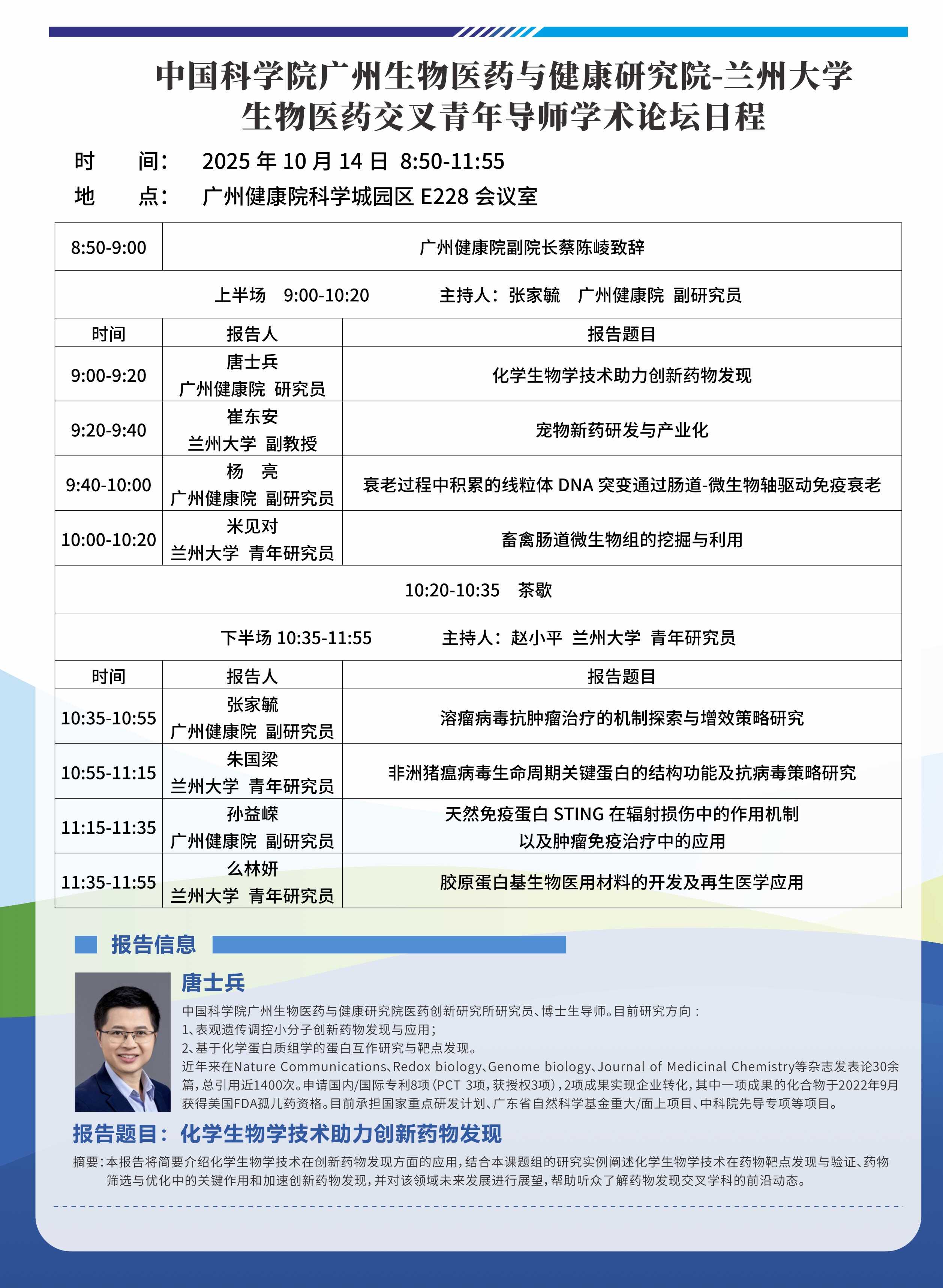 中國(guó)科學(xué)院廣州生物醫(yī)藥與健康研究院-蘭州大學(xué)生物醫(yī)藥交叉青年導(dǎo)師學(xué)術(shù)論壇