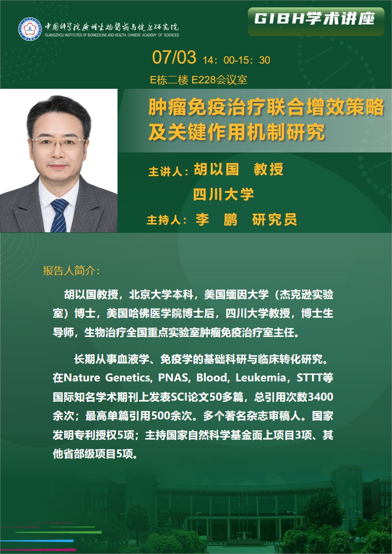 2025年7月3日學(xué)術(shù)講座: 腫瘤免疫治療聯(lián)合增效策略及關(guān)鍵作用機制研究