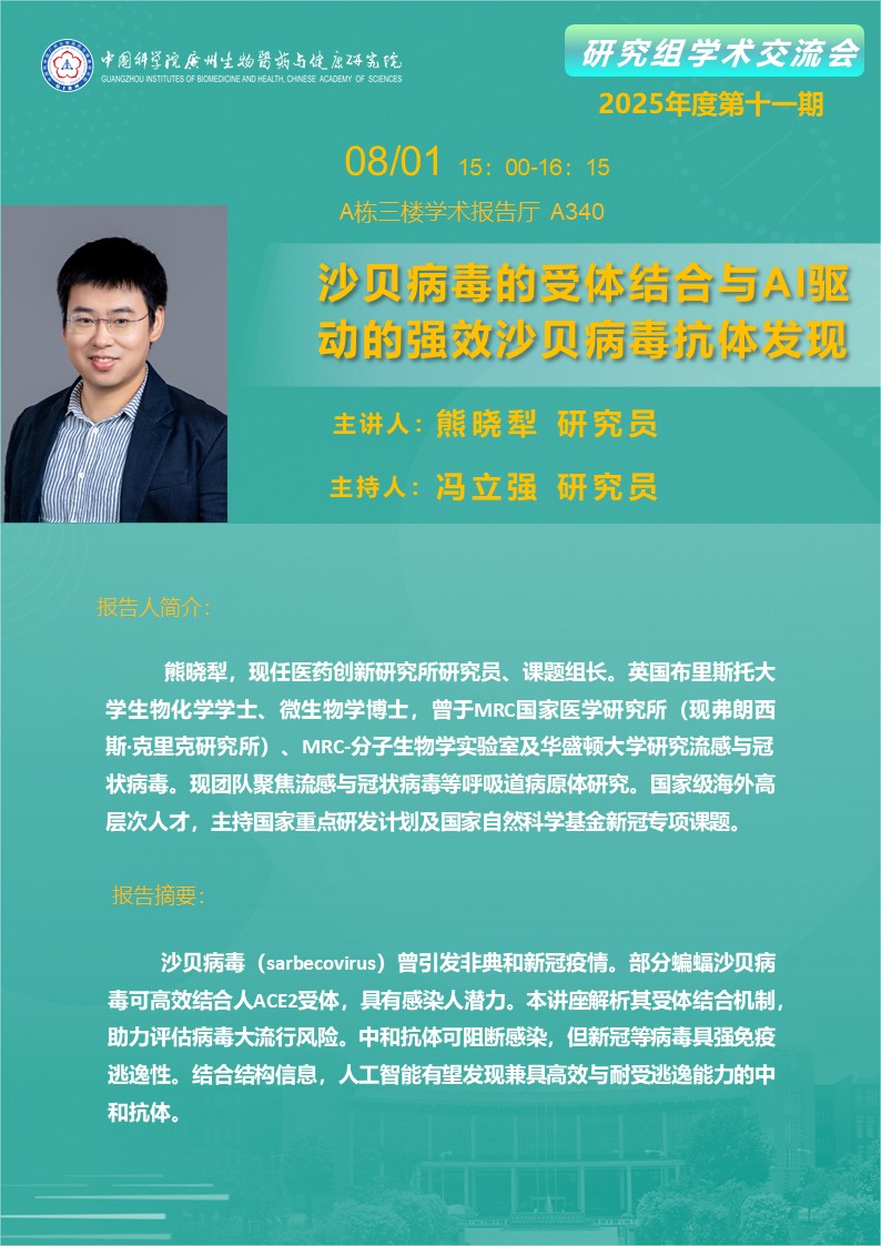 2025年8月1日研究組學(xué)術(shù)交流會(huì)(2025年度第十一期): 沙貝病毒的受體結(jié)合與AI驅(qū)動(dòng)的強(qiáng)效沙貝病毒抗體發(fā)現(xiàn)