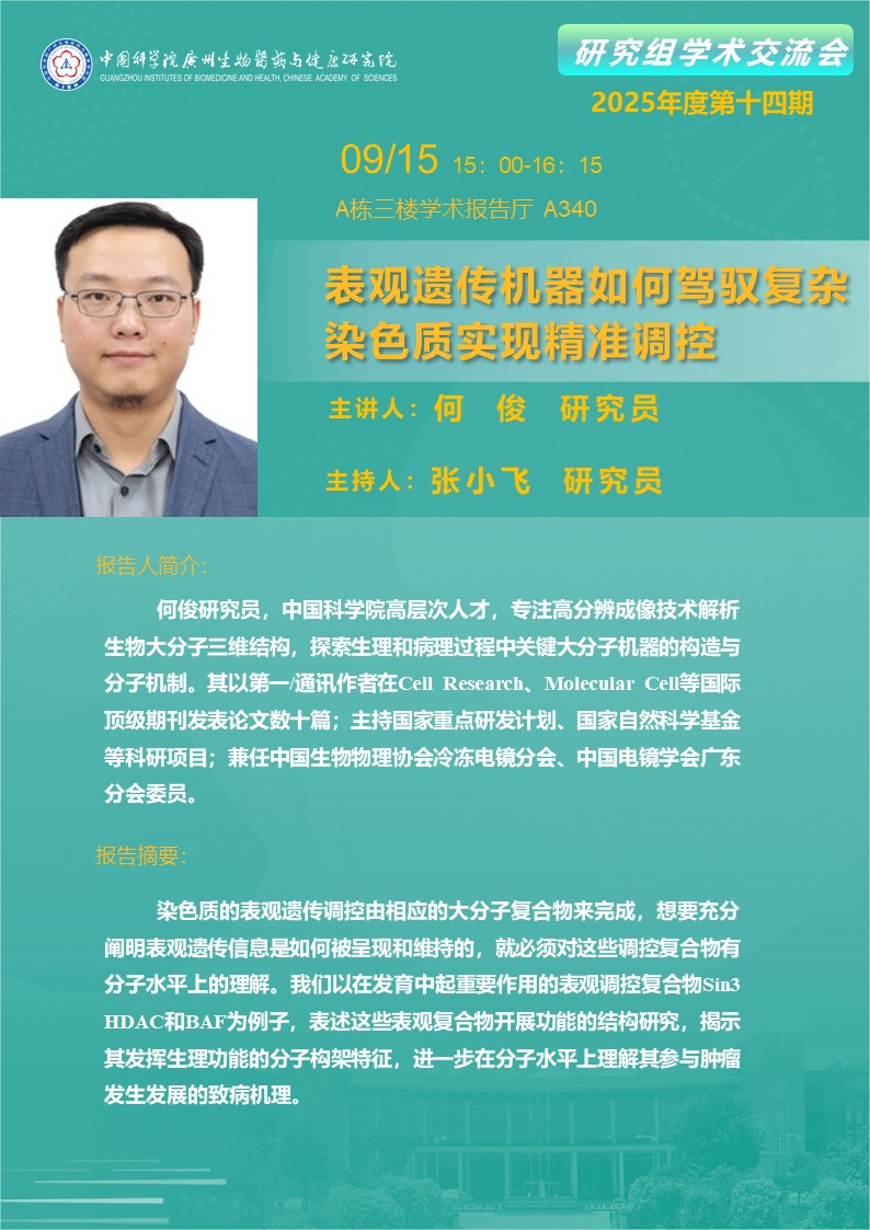 2025年9月15日研究組學術交流會(2025年度第十四期):表觀遺傳機器如何駕馭復雜染色質(zhì)實現(xiàn)精準調(diào)控