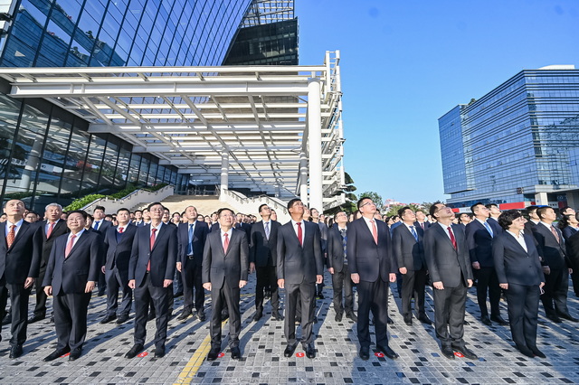 上午8:18,莊嚴的升國旗儀式正式開始,象嶼集團領導班子、各行業(yè)各公司負責人、員工代表等約300人整齊列隊參加。旗手執(zhí)旗前行的鏗鏘足音,象征著新的一年腳踏實地、砥礪前行。當鮮艷的五星紅旗在象嶼集團大廈前冉冉升起,全場象嶼人也將愛國之情、報國之志深深地刻進心里。