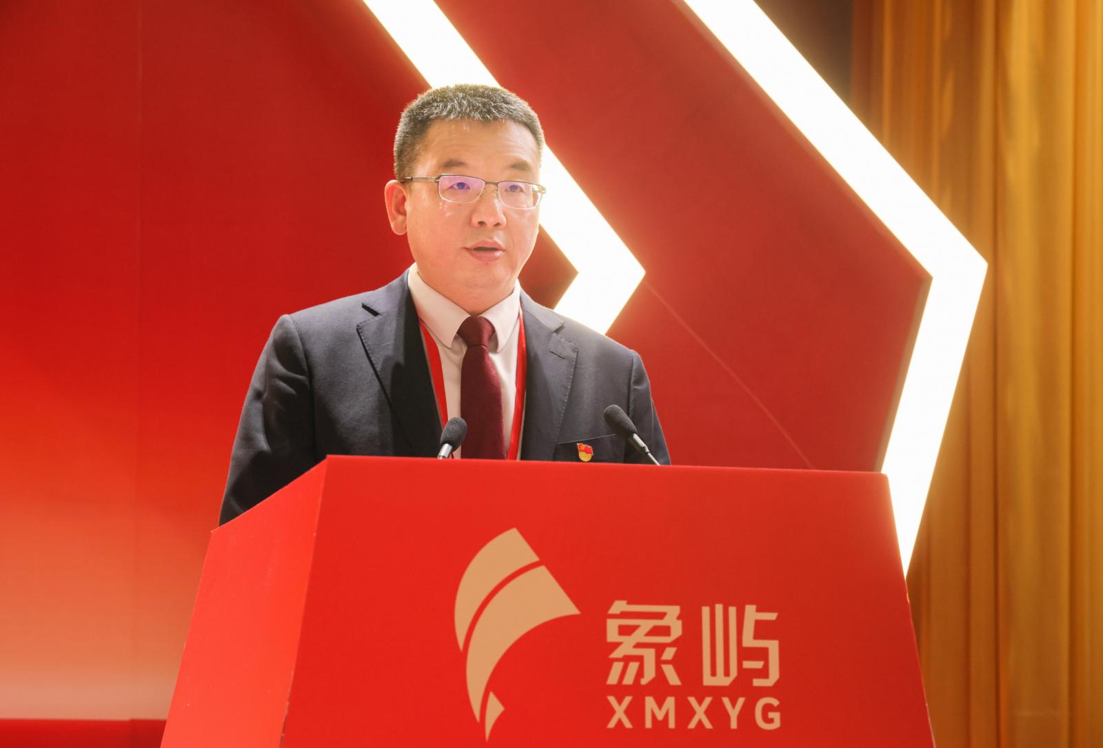 張水利同志代表中國共產(chǎn)黨廈門象嶼集團(tuán)有限公司第五屆委員會向大會作報告。