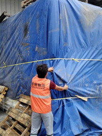 整理托盤,疏通水槽,臺(tái)風(fēng)來臨前,防臺(tái)工作有條不紊的開展著。