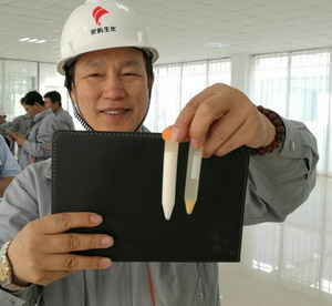 中午11時(shí)40分,淀粉車間傳來喜訊,玉米成功通過浸泡、破碎、分離、洗滌、脫水、干燥等工序后成功產(chǎn)出淀粉及副產(chǎn)品。象嶼生化生產(chǎn)總監(jiān)林繼民介紹,短短四小時(shí)便能一次性試車成功,這在淀粉行業(yè)史無前例,象嶼生化再創(chuàng)佳績!