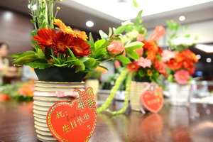 參加培訓的女職工們用自己的插花作品祝福集團21歲生日快樂