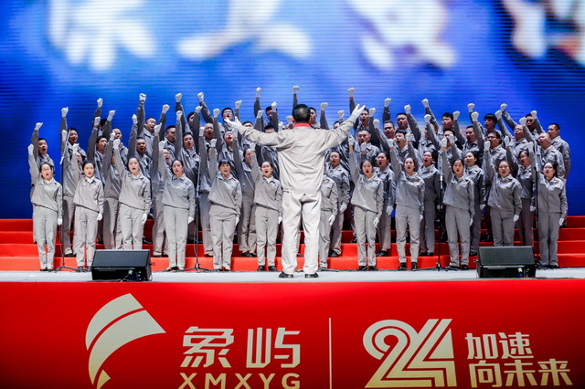 企業(yè)與國家命運緊密相連,祖國的繁榮昌盛為每個人的夢想提供了廣闊的舞臺,祖國的和諧穩(wěn)定也為每個人的夢想提供了蓬勃生長的空間。《祖國不會忘記》《我的中國心》《中國夢!飛起來》《今天是你的生日》《走向復(fù)興》……一首首澎湃的愛國主義旋律在紅色舞臺上飛揚,臺上臺下千名象嶼人和共建單位的黨員干部群眾手舞紅旗,共同輝映成一片紅色的海洋,展現(xiàn)出人民對黨、對祖國的深厚感情,呈現(xiàn)出一派積極向上、開拓進(jìn)取的精神風(fēng)貌。