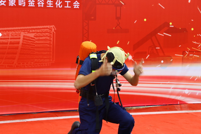 正壓式呼吸器主要運用于狹小或密閉空間作業(yè)、救援使用,對生產中突發(fā)事件的應急處置起到重要保障作用。現場,選手們個個動作嫻熟,對呼吸器佩戴裝置、氣瓶壓力、報警閥、面罩及呼吸閥進行細致的檢查,做到不遺漏一絲風險。在佩戴環(huán)節(jié)中,象嶼海裝的選手表現突出,僅用15秒左右便完成裝備佩戴,并做到肩帶、腰帶、面罩收緊而不死勒,各個閥件密封良好的效果。