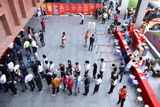 上周六早上8點多,獻血現(xiàn)場便陸續(xù)有人在等候。記者看到,在象嶼集團志愿者的引導(dǎo)下,大家按常態(tài)化防疫措施佩戴好口罩,有序進行無償獻血。