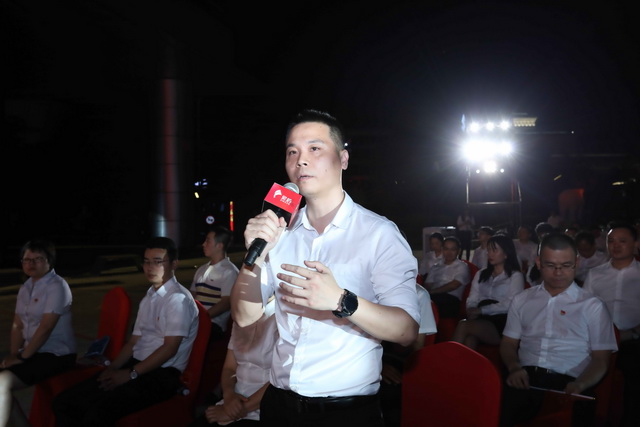 ▲福建象嶼房地產(chǎn)總經(jīng)理陳志杰帶來宣講《振奮文化精神,緊抓發(fā)展機(jī)遇,以實干篤定前行》