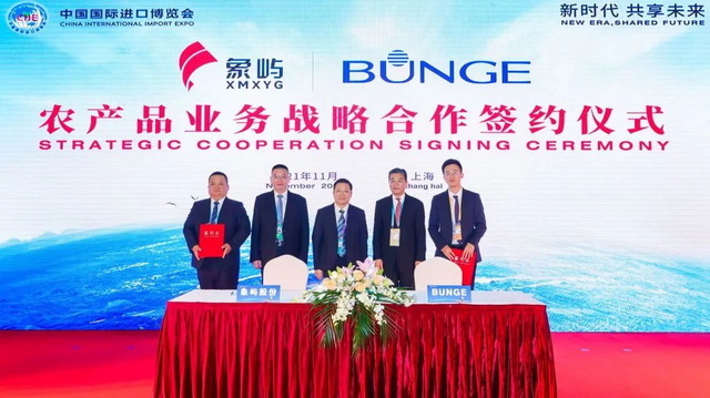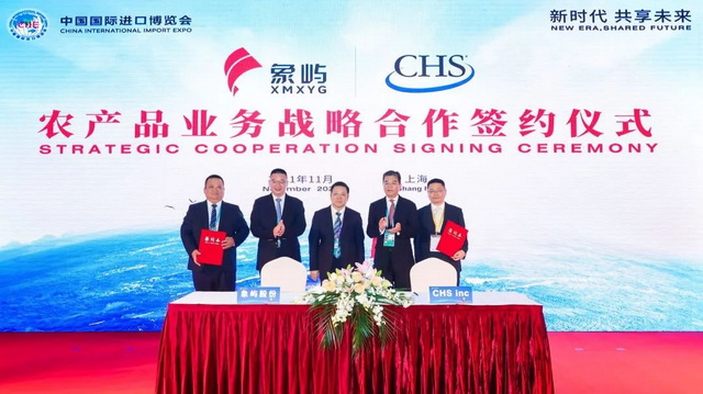 簽約儀式上,國際四大糧商中的兩家——ADM和邦吉現(xiàn)身簽約臺。象嶼股份分別與兩家重量級企業(yè)以及全球領(lǐng)先的農(nóng)業(yè)綜合企業(yè)美國CHS公司簽署農(nóng)產(chǎn)品業(yè)務(wù)戰(zhàn)略合作協(xié)議。當(dāng)天上午,象嶼股份還與新加坡翱蘭國際簽約開展戰(zhàn)略合作。