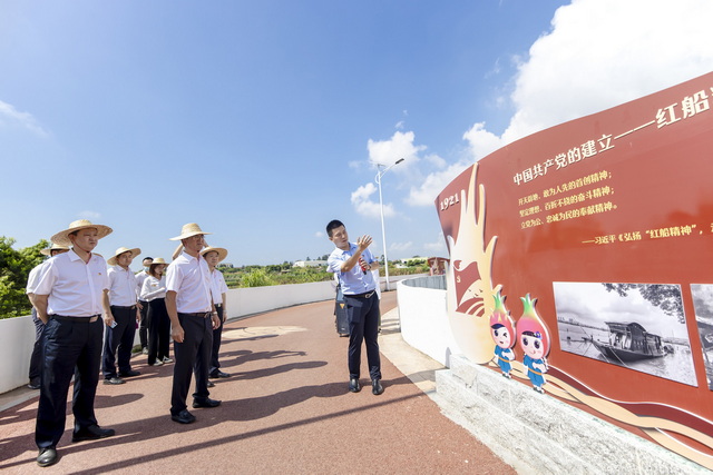 象嶼集團(tuán)黨員干部在翔安大宅百年黨史大道學(xué)習(xí)鮮活黨史。