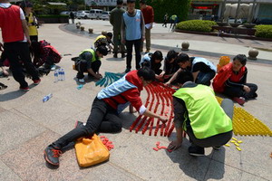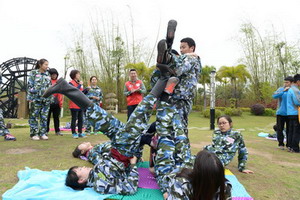 為幫助競選者更好地樹立無邊界組織思維,本次拓展一改常規(guī),分組成員不再固定,每一環(huán)節(jié)都作動態(tài)調(diào)整,每位競選者需要不斷尋找新合伙人、組建新團隊,并在這一過程中共度難關(guān)?!盎鹁€報到”以團隊協(xié)力奔跑的方式幫助競選者釋放自我、直入主題;“我是大富翁”讓競選者體悟到資源整合優(yōu)化的重要性,建立起合作共贏的團隊意識;“步步高升”、“斗轉(zhuǎn)星移”、“左右開動”不僅勞其筋骨,更苦其心志,考驗著每位競選者的抗壓能力、分工協(xié)作以及風(fēng)險意識;“七巧板”因小失大的全軍覆沒,則讓競選者們集體沉默,開始學(xué)著跳出個人利益優(yōu)先的思維局限,重新思考個體在團隊中的角色定位,并更深地理解“共贏”、“利益最大化”等詞匯的內(nèi)涵。歷經(jīng)艱苦的身心洗禮,競選者們在收官項目“多米諾骨牌”中空前凝聚,“天災(zāi)人禍”只會讓他們愈挫愈勇,烈日下神經(jīng)的緊繃、匍匐的姿態(tài)和接續(xù)的汗水只為贏得最后勝利。從各式象嶼文化創(chuàng)意造型,到最后集體創(chuàng)作的多彩象嶼集團標(biāo)識,青年象嶼人通過骨牌表達著對集團的熱愛,他們對象嶼夢的向往與追求也從中展露無遺,正如他們在即興晚會上的所歌所舞所演,青春激情、夢想綻放,就在你我身上。