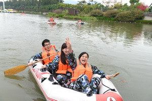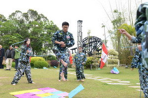 “左右開動”項目中,學(xué)員們同心協(xié)力,向前劃行